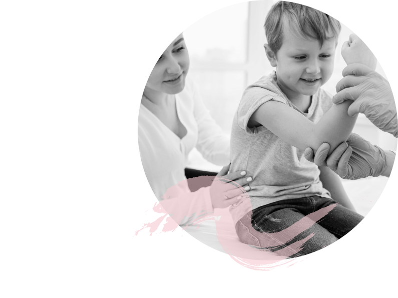 kind en legt het verloop van de bloedafname duidelijk uit om hen gerust te stellen.